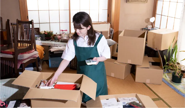 買取査定スタッフが同行し遺品の整理を行います。買取査定スタッフが同行する事で、一概に片付けるのではなく、買取をする事で費用の削減にもつながります。